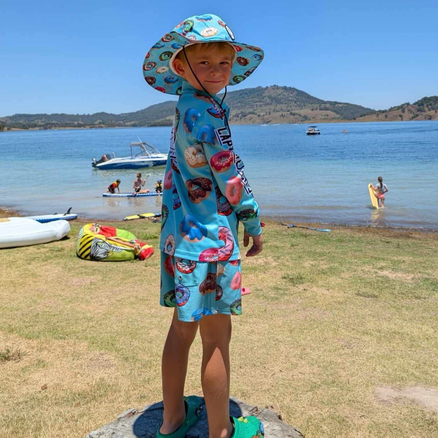 Introducing the Bonnie Hat with our fun donut design! Featuring adjustable straps for a perfect fit, it ensures comfort and style. One sizes fits most and stay protected with UV 50+ sun protection while adding a touch of whimsy to your look.